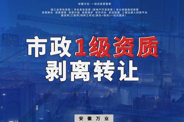 需要注意的是,市政施工總承包一級(jí)資質(zhì)的轉(zhuǎn)讓涉及一系列法律法規(guī)和行政手續(xù),應(yīng)嚴(yán)格按照規(guī)定操作,確保程序的合規(guī)性。同時(shí),對(duì)于需要?jiǎng)冸x資質(zhì)轉(zhuǎn)讓的企業(yè),可以考慮尋求專業(yè)的代辦服務(wù),如安徽萬(wàn)業(yè)建筑資質(zhì)代辦公司,以確保資質(zhì)轉(zhuǎn)讓的順利進(jìn)行。