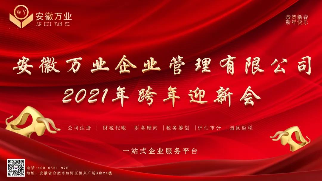 我們的跨年迎新會與生日會在歡聲笑語中圓滿落幕,在未來的日子里,安徽萬業(yè)也將繼續(xù)肩負“注冊萬千企業(yè),成就創(chuàng)業(yè)者夢想”的使命,并為打造全國一站式企業(yè)服務平臺而努力! 企業(yè)一站式服務平臺 工商注冊、財稅代賬、審計評估、稅務籌劃、商標專利、資質審批、招商代理、企業(yè)孵化、稅收籌劃、高企認證、進出口退稅、企業(yè)上市輔導、項目申報 公司網站:www.910jl.cn ?聯系方式:400-0551-976 合肥總部:安徽省合肥市南一環(huán)與馬鞍山路交口恒興廣場A座24樓 分部:合肥市行政服務中心一樓“萬業(yè)公司代理窗口”(工商局窗口正對面) 分部:合肥市瑤海區(qū)行政服務中心一樓“萬業(yè)公司代理窗口”(工商局窗口正對面)