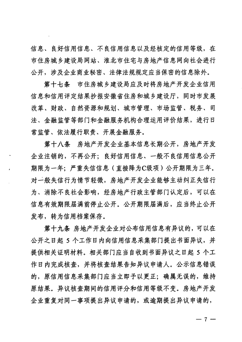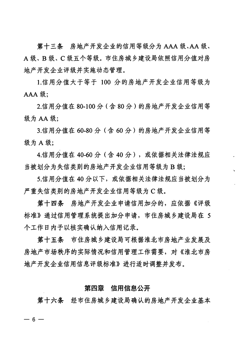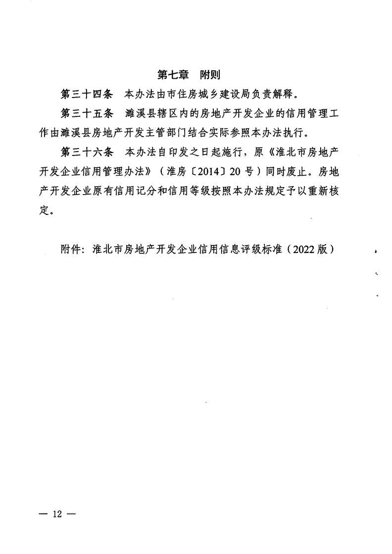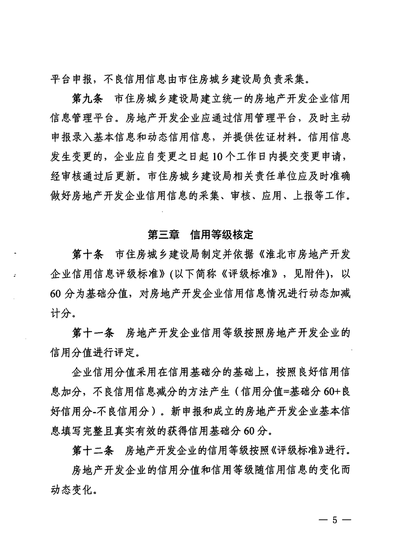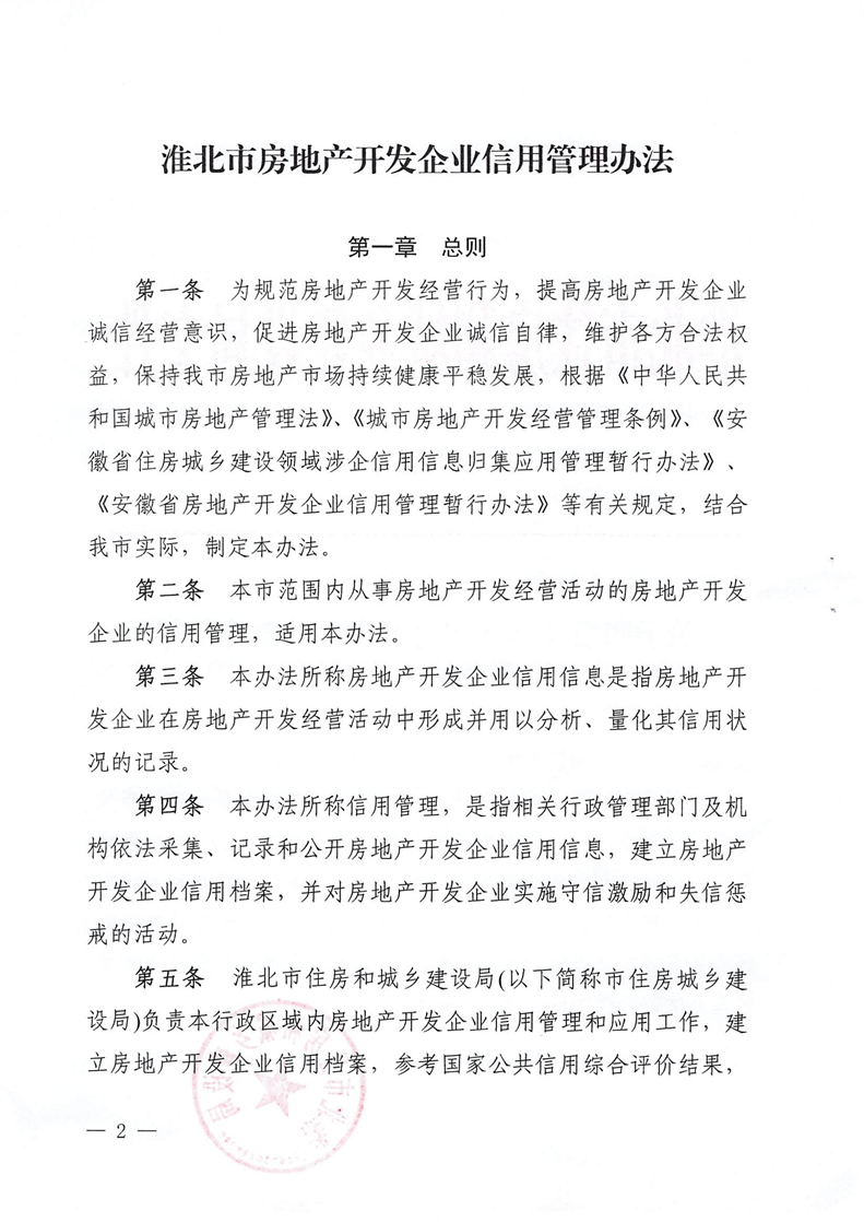 重磅消息!淮北市住房和城鄉(xiāng)建設(shè)局官網(wǎng)昨日發(fā)布關(guān)于印發(fā)《淮北市房地產(chǎn)開發(fā)企業(yè)信用管理辦法》的通知(淮住建規(guī)【2022】1號)文件,擬對開發(fā)商信用進行評級,并根據(jù)開發(fā)企業(yè)信用不同等級實施差異化管理,為規(guī)范房地產(chǎn)開發(fā)經(jīng)營行為,促進房地產(chǎn)業(yè)持續(xù)健康穩(wěn)定發(fā)展提供政策指引。具體內(nèi)容如下: