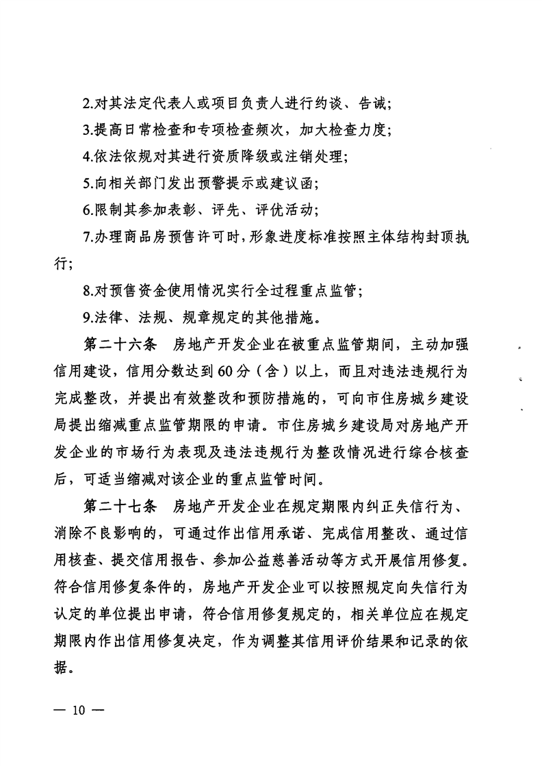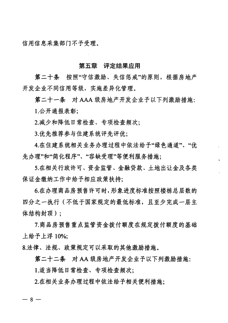 為繼續(xù)推進行業(yè)信用體系建設(shè),房地產(chǎn)開發(fā)相關(guān)部門宜進一步深化信用管理,積極探索開發(fā)企業(yè)信用評價結(jié)果的使用,引導(dǎo)開發(fā)企業(yè)積極創(chuàng)優(yōu),提高房地產(chǎn)開發(fā)企業(yè)誠信經(jīng)營意識,鼓勵開發(fā)企業(yè)走責(zé)任地產(chǎn)、品質(zhì)地產(chǎn)之路,為社會提供更好的產(chǎn)品和服務(wù)。
